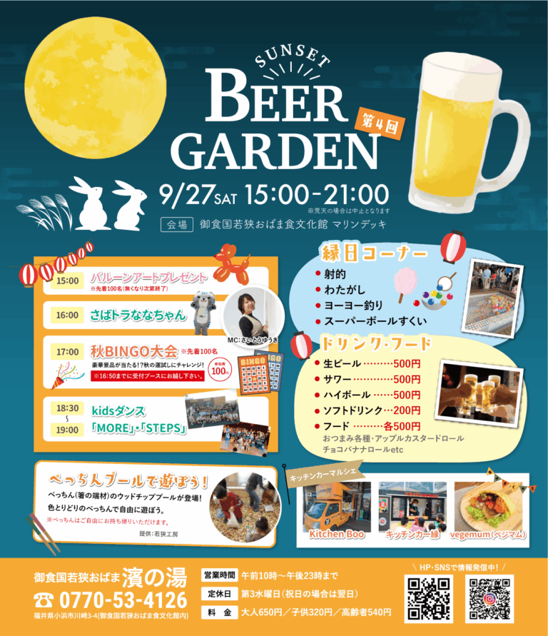 2025/9/27(土)15時より、福井県小浜市・御食国若狭おばま 濱の湯のマリンデッキでビアガーデンを開催いたします。